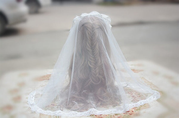 2019 New Short Wedding Veil Romantic Lace Lolita Elbow Veil
