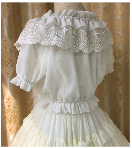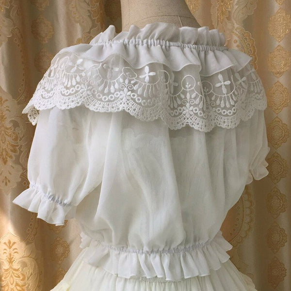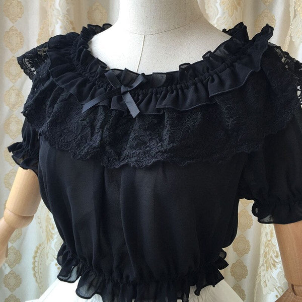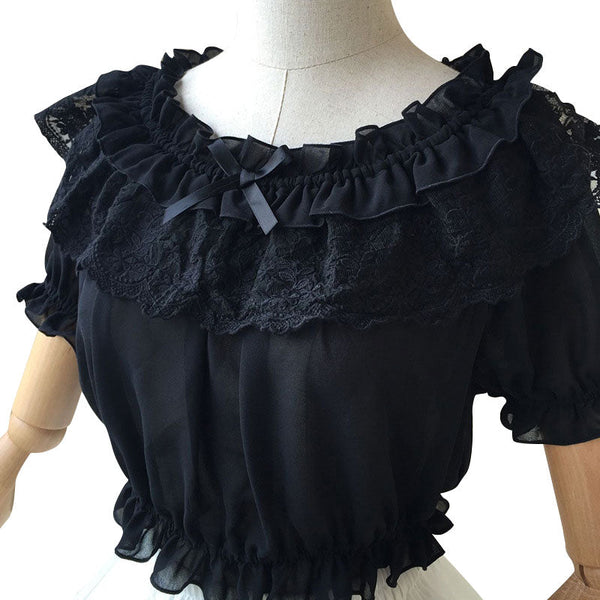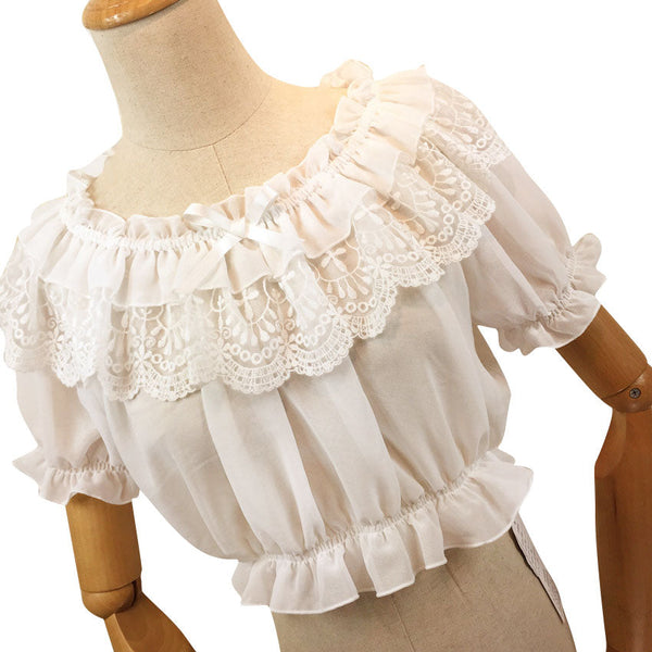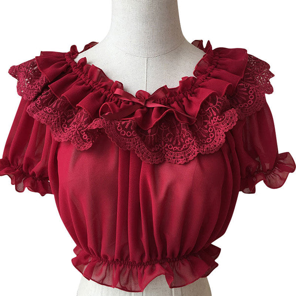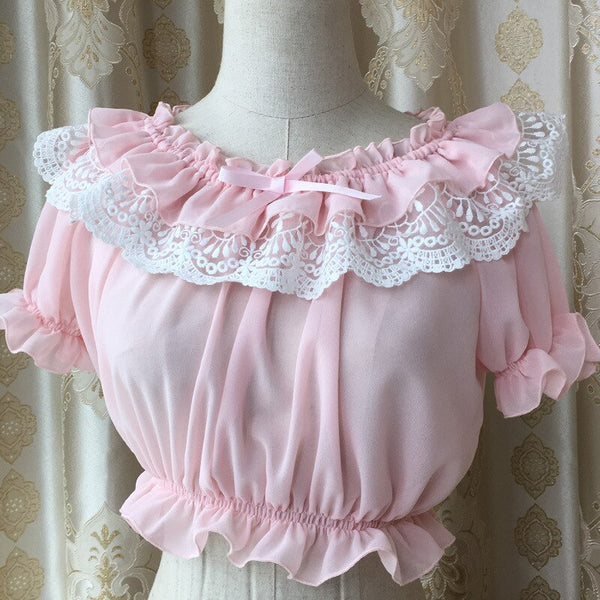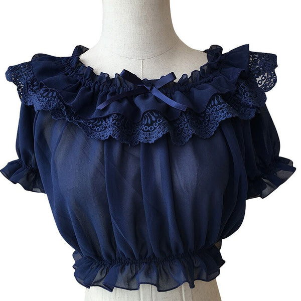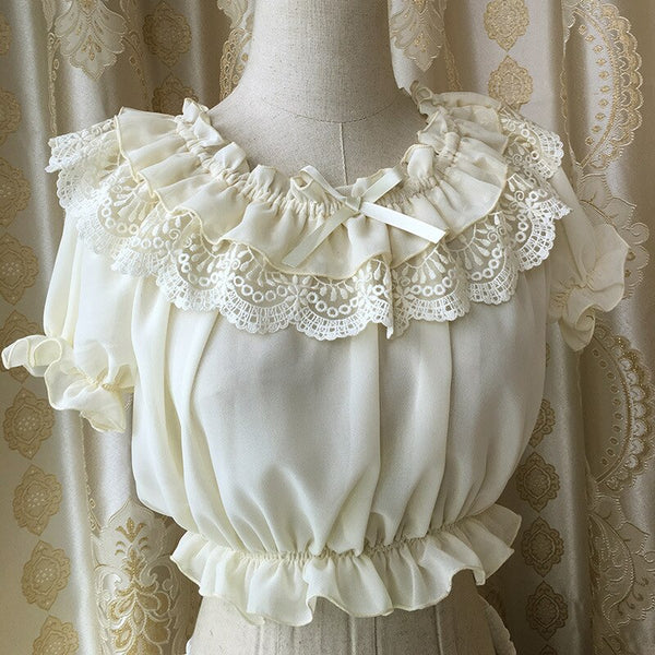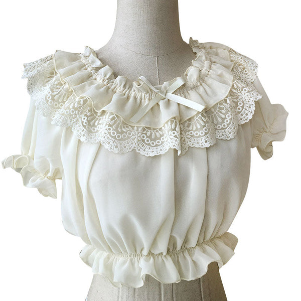 New Women's Chiffon Crop Top Summer Short Sleeve Blouse with Lace