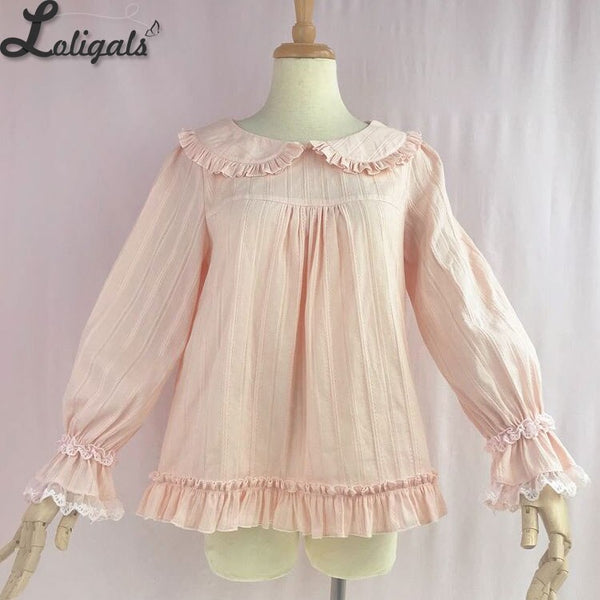 Women's Lolita Cotton Blouse Pink Peter Pan Collar Ruffled Top Fabric: jaquard cotton fabric Features: peter pan collar, ruffled hemline Blouse Size in CM M: bust 80cm-90cm L: bust 90cm-100cm XL: bust 100cm-112cm