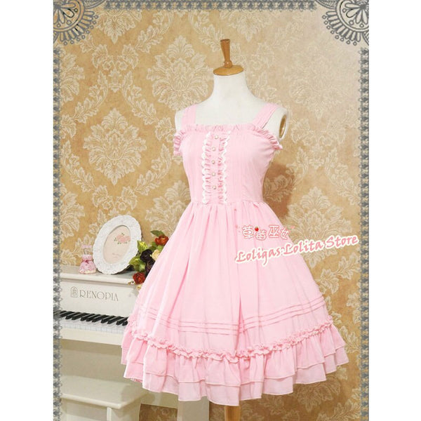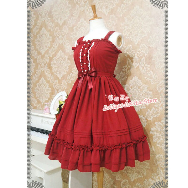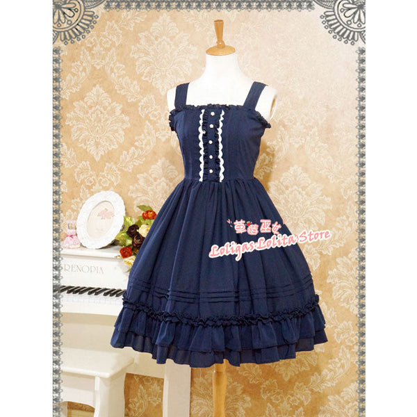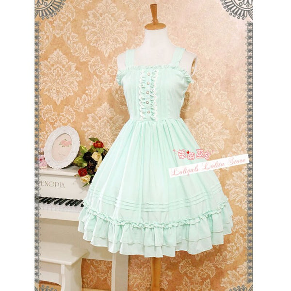 Classic Lolita Sleeveless Chiffon Dress Sweet Ruffled Midi Dress
