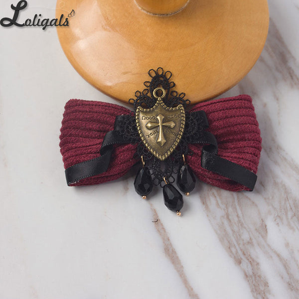 Gothic Burgundy Lolita Headpiece Corduroy Headwear & Beret Features: detachable feather, chocker width 8cm Berets Size: free size