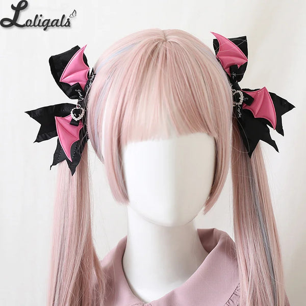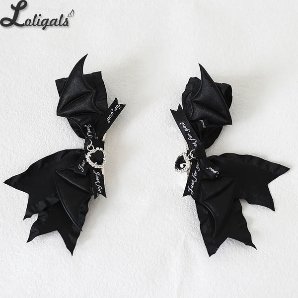 Gothic Wings Hair Clips Lolita Double Ponytail Hair Accessories Features: Gothic PU wings and sweet bow decor
