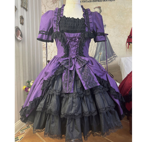 Miss Ryla ~ Vintage Lolita Dress Short Sleeve Medieval Dress w. Detachable Flare Sleeves