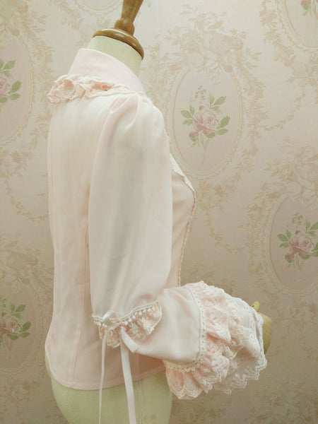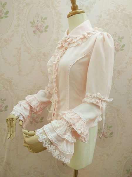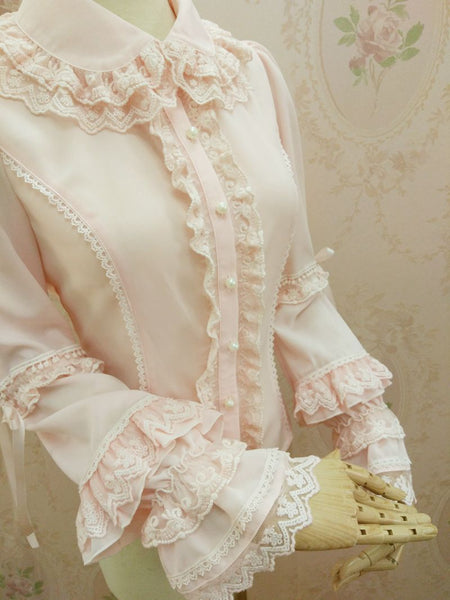 New Sweet Lolita Blouse with Double Layered Lace Collar Classic Women's Shirt