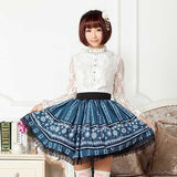 Original Design Rococo Style Blue Lace Snowflakes Printed Short Lolita Pleated Skirt for Lady