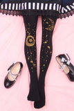 Sweet Mori Girl Tights Kawaii Gold Star & Moon Stamped 100D Lolita Pantyhose