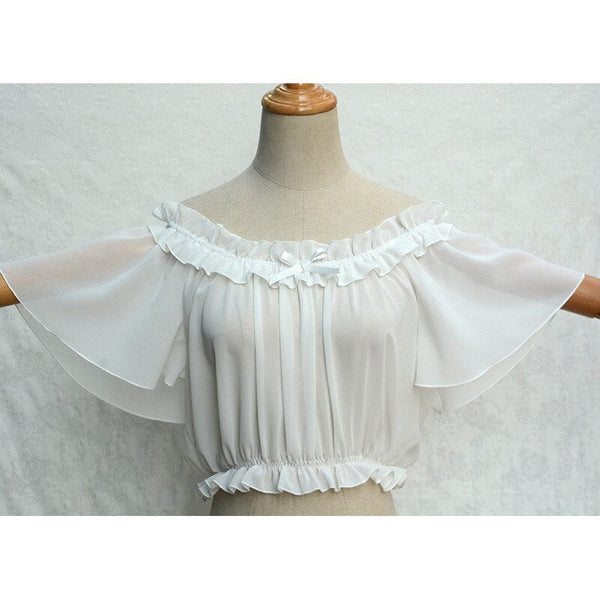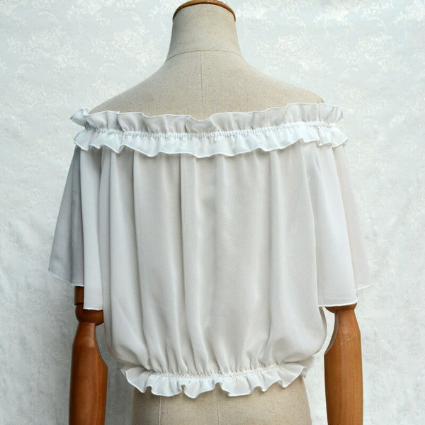 White Off the Shoulder Women's Chiffon Crop Top Short Batwing Sleeve Chiffon Blouse